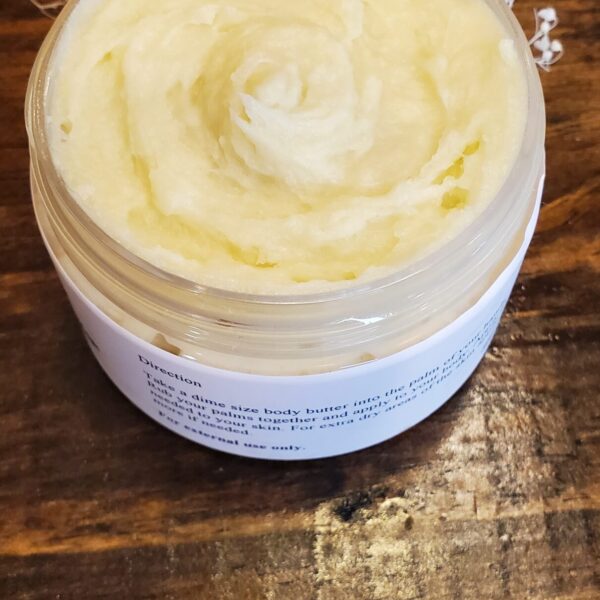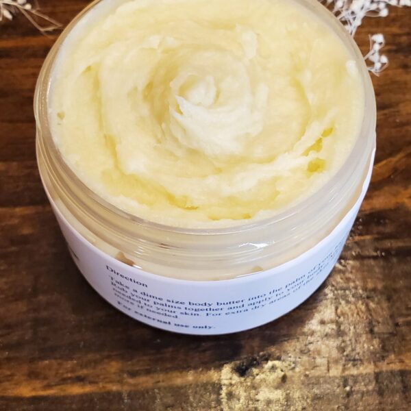 100% organic and vegan, made from 100% organic unrefined Shea butter. It contains essential fatty acids that helps keep the skin soft and hydrated, it also helps reduce wrinkles. Organic and Vegan Body Butter. Great for eczema or any dry skin. Made for your skin just the way nature intended free of parabens or artificial fragrances.